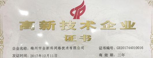 2017年12月11日,國家高新技術企業(yè)認定服務平臺對外公布了“廣東省2017年第二批擬認定高新技術企業(yè)名單”,梅州市金新科網絡技術有限公司作為一家互聯網信息化服務類高科技產業(yè)的公司,順利通過認定,榮登榜單之中!
